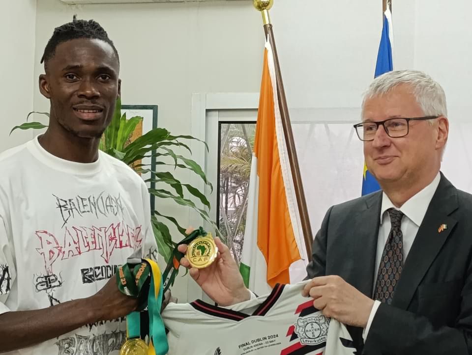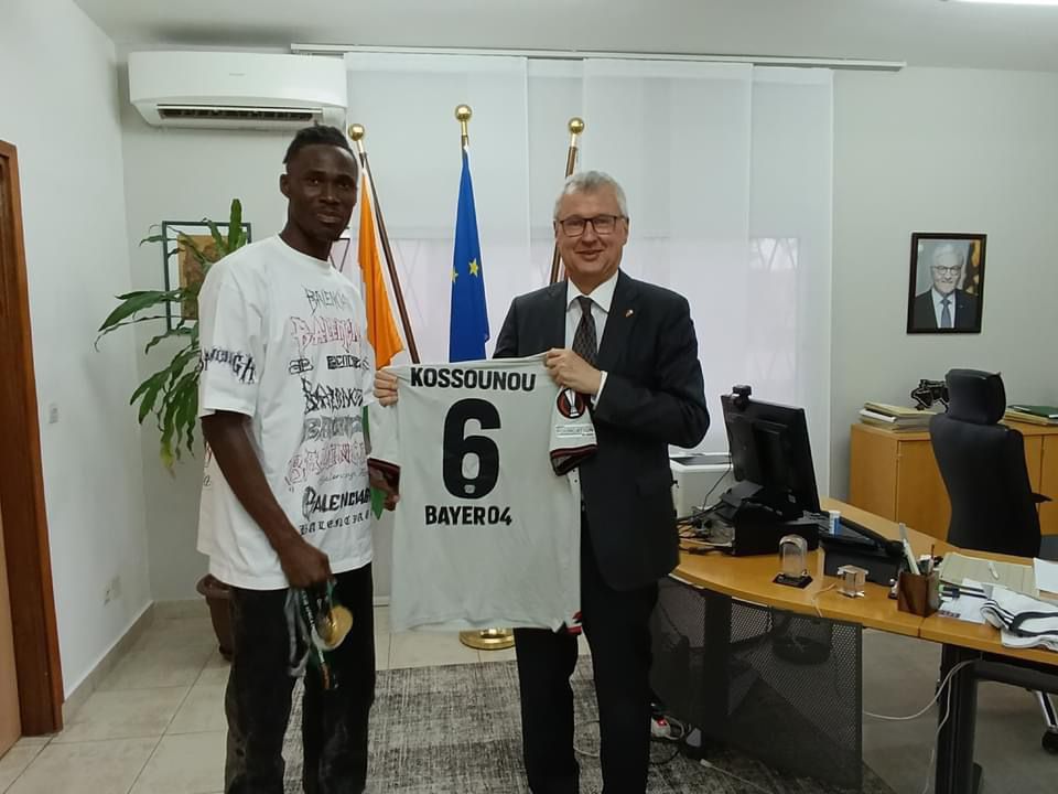 Le vendredi 14 juin, l’Ambassadeur d’Allemagne en Côte d’Ivoire a eu l’honneur de recevoir Odilon Kossounou, footballeur international et actuel champion d’Allemagne avec le Bayer Leverkusen.