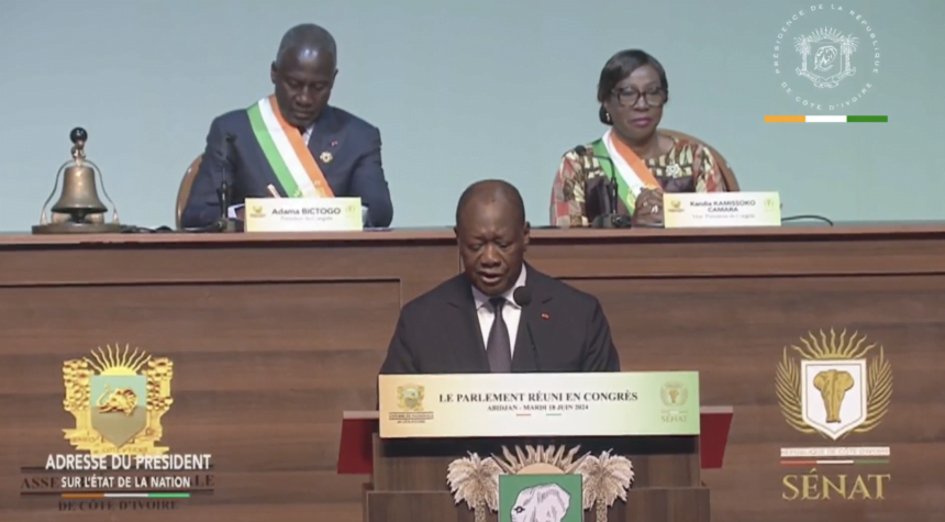 Ce mardi 18 juin 2024 à 11h00, le Président de la République SEM Alassane Ouattara a prononcé son discours sur l’état de la Nation devant les Députés et les Sénateurs, conformément à l’article 114 de la Constitution qui prévoit cette réunion spéciale du Parlement en Congrès.
