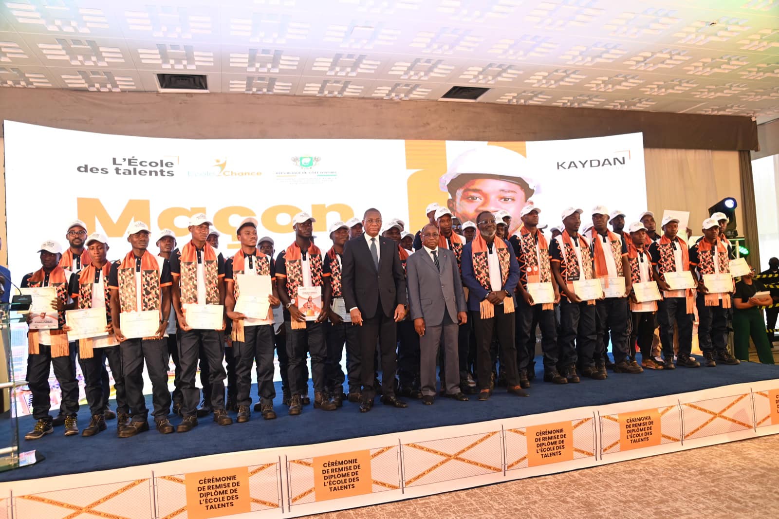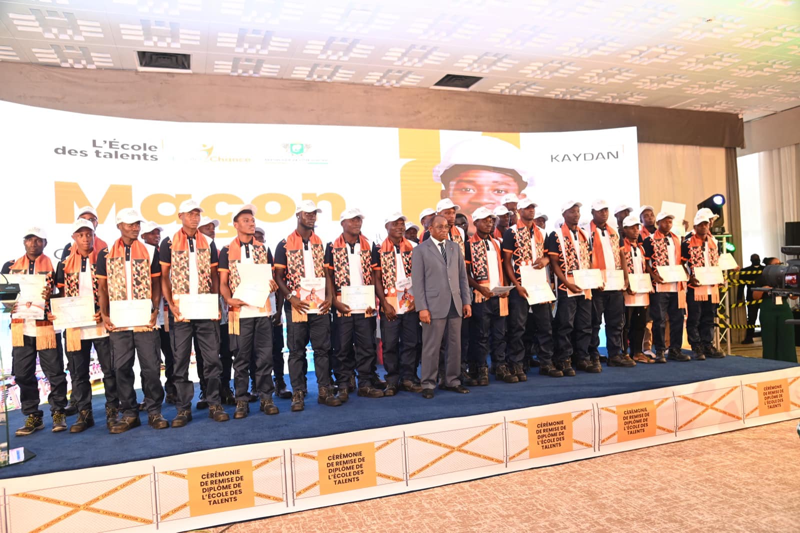 Le groupe Kaydan et le ministère de l’Enseignement Technique, de la Formation Professionnelle et de l’Apprentissage ont procédé, le 25 juillet 2024, à Abidjan, à la remise de diplôme de fin de formation de la première cohorte des pensionnaires de l’Ecole des Talents. Véritable modèle d’un partenariat public-privé réussi, les récipiendaires, hommes et femmes, au nombre de 169, ont été formés dans les domaines du carrelage, de la ferronnerie, de la peinture bâtiment, de staffeur plaquiste, de ferraillage, de menuiserie coffrage, de la maçonnerie notamment. Ils entrent dans l’histoire, en devenant ainsi les titulaires des premiers certificats de qualification professionnelle (CQP) aux métiers du bâtiment.