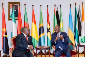 Cyril Ramaphosa, Président de l’Afrique du Sud, avec qui les échanges ont porté sur l’approfondissement des relations commerciales et des investissements entre les deux économies phares du continent.