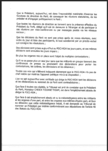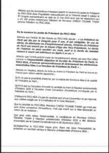 Lecture: PDCI-RDA : La Légitimité de Cheick Tidiane Thiam Contestée, Un Nouveau Chapitre dans la Lutte pour la Présidence !