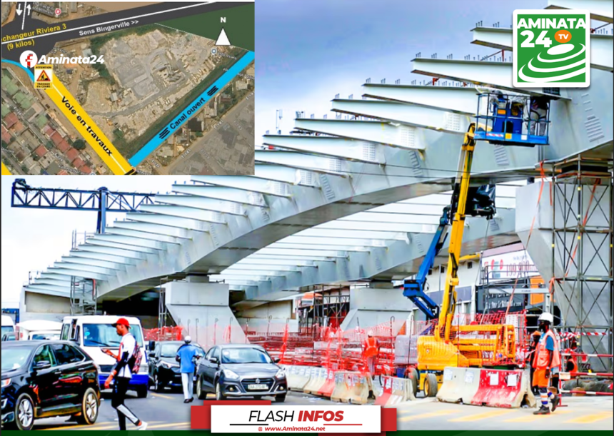 Dans le cadre du Projet de Transport Urbain d’Abidjan (PTUA), les travaux de l’important échangeur de la Riviera 3 (9 Kilos) entrent dans une phase sensible. Résultat : la circulation sera fortement impactée, mais uniquement la nuit.